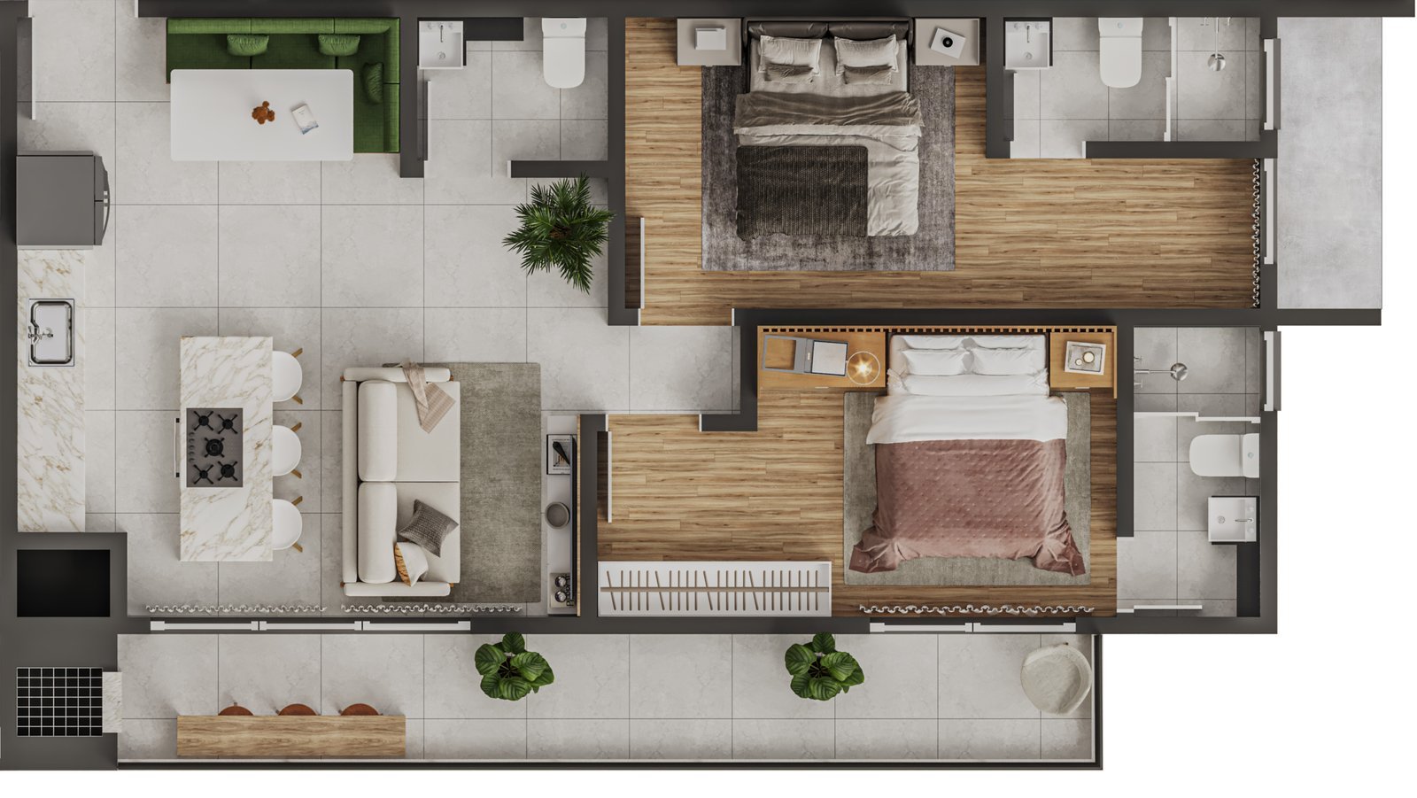 APTOS TIPO: 2 SUÍTES | SUÍTE + 1 | 1 SUÍTE | 1 DORM.