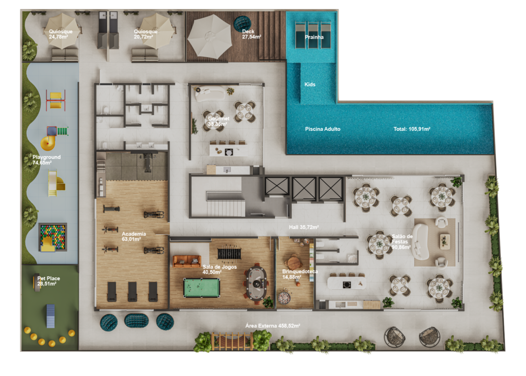 possui quase 1.900m² de equipamentos para atender toda a família. O destaque do empreendimento fica por conta do Rooftop, carinhosamente
